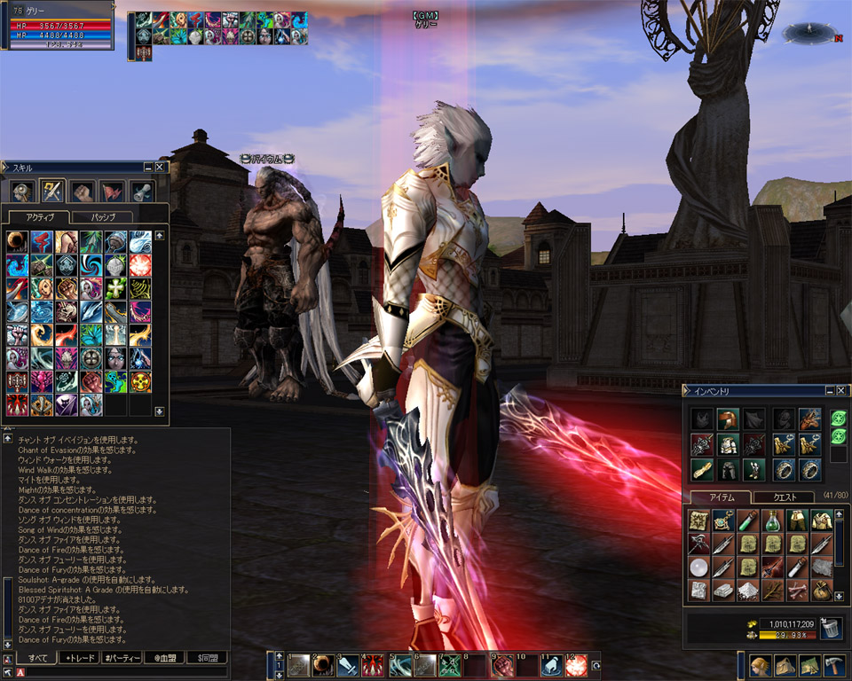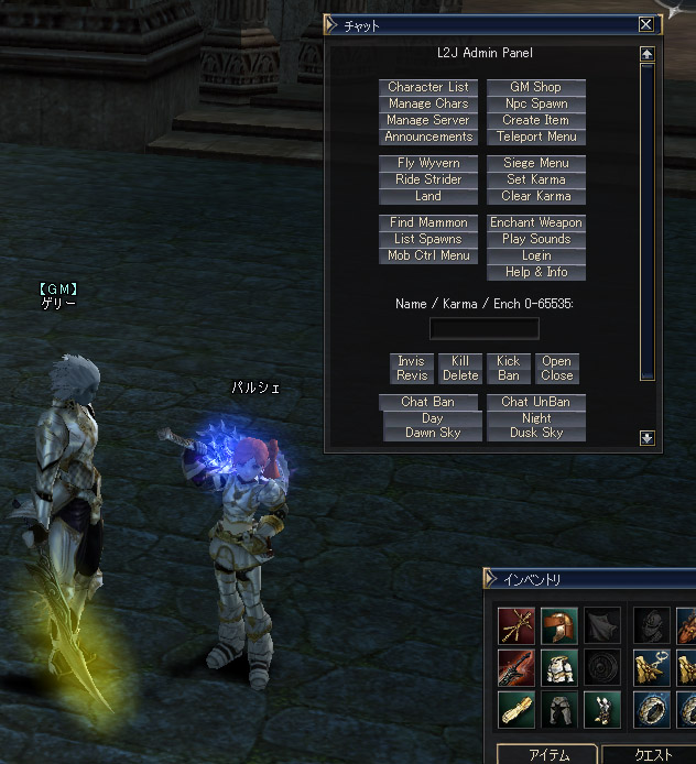 ここはリネ2を引退したいけれども、やり残した事・やってみたい事が あってなかなかキッパリやめられない方を対象にしたエミュ鯖です。 装備したかったアイテム・礼服・英雄武器などを手に取るもよし。 ちょっと気になってた職業を高レートで駆け足で体験するもよし。 高レベル対象で行けなかった狩場の風景を眺めるもよし。 要C5.1クライアント ・レート Exp:SP:A:アイテム=15:20:30:1 ・自職スキル自動習得なし ・他職のスキル習得可能。(種族およびF/M職ペナあり) ・OE成功確率:強化スク100%。+100まで可。 ・全装備品各村GMショップ(タワー)で販売。 ・1次・2次転職は初期村キャットで可能(転クエ不要)。 ・レベルキャップLv78。 ・キャラスタート時に100M所持。 ・グレードペナあり。 ・鯖ON 21時~24時(不定期) ・同時接続数:15 ・バッフ歌踊持続時間は各1時間。 ・3次職可、サブクラス可 ザリチェシステム実装 キーボード移動・ゲームパッド対応 見習い武器・旅人武器交換券実装 Powered By Hybridized PR すべてのMOBからB・A・SグレードのDAIがドロップします。 ギランとゴダードにいるイベント管理人で各DAIを上位交換できます。 その場合、MOBからドロップする「ポモナの種」「大きなポモナの種」が 必要となります。 (061031修正項目) 各DAIのドロップ率を修正。(B↓A↑↑S↑のイメージ) ポモナの種も1度にドロップする数を複数に変更。 メンテを行い、以下の装備効果を実装いたしました。 ○Sグレ装備・英雄武器:クライアントに効果の説明があります。 ○ボスアクセ各種:クライアントに効果の説明があります。 ○タトゥー各種 :クラには説明がない為、ここで効果を説明します。 ・タトゥーオブパワーN :物理攻撃力+5% ・タトゥーオブソウルD :魔力+5% ・タトゥーオブファイアD :魔力+5%・詠唱速度+5% ・タトゥーオブスタウトD :物理攻撃力+5%・物理攻撃速度+5% ・タトゥーオブブレイズC :物理攻撃力+10%・最大HP+1000 ・タトゥーオブアバドンB :物理攻撃力+10%・物理攻撃速度+10% ・盟約のタトゥーB :魔力+10%・詠唱速度+10% ・タトゥーオブドゥームB :物理攻撃力+10% ルーツ/スリープ/スタン耐性+10% ・タトゥーオブディヴァインB :魔力+10% ルーツ/スリープ/スタン耐性+10% ・タトゥーオブフレイムB :魔力+10%・最大MP+1000 ・タトゥーオブブラッドA :物理攻撃速度+10%・詠唱速度+10% 出血耐性+10% ・タトゥーオブアブソリュートA:物理攻撃力+20%・最大HP+1250 被ダメージの25%を反射 ・タトゥーオブナイトメアA :魔力+20%・最大MP+1250 被ダメージの25%を反射 ○ノーブレスティアラ:近接職ソロ救済としてノーブレスティアラ装備時に ヴァンパイアリックレイジ効果が付与されます。 効果はLv1(与ダメ4%吸収) メンテを行い、下記の要素を追加しました。 ・移動速度アップ :本鯖の1.5倍としました。 ・重量制限撤廃 :100%まで重量ペナ発生しません。 (追加項目) ・レイドボス調整:HP・MP・DEFを本鯖比50%に弱体化しました。 今後もみなさんの意見を取り入れて調整していくつもりです。 (追加項目060503) ・GMショップにてマナ回復POT販売開始いたしました。(1個でMP200回復) ・バッフ歌踊の持続時間を1時間に変更いたしました。L2dayスクと 組み合わせれば快適かもしれません。 (追加項目060514) ・C4スキルを一部実装しました。(3次職バッフ系・デュエリスト系・チャント系) ・新召喚獣ユニコーンセラフィムを実装しました。 ・召喚獣の移動速度アップ。 (追加項目060518) ・C4地域にMOB配置いたしました。 ・ゴダードおよびルウン城村にNPC配置いたしました。 (追加項目060519) ・GMショップに「血の証」追加。 ・新召喚獣「クイーンオブザキャット」「ナイトシェード」「カーズドマン」を 実装いたしました。 (追加項目060520) ・礼服装備時に以下の効果が付与されます。 (防御力166:アルカナローブ同等) MP+1200・MEN+5・INT+5・WIT+5・STR-3・CON-2 移動速度+7%・詠唱速度+15%・スタン耐性+50% ※注意事項※ 「礼服+弓」装備または釣竿装備の状態になりますとクリエラが発生し、INできないバグが発生いたします。上記の装備をお試しになる際は十分お気をつけくださいませ。 万一INできないトラブルが発生した場合はコメントをつけてくだされば 対応いたします。 (追加項目060526) ・ギランのペット管理人とアデンGK隣のペット管理人からスト・ワイバーンが レンタルできます。C4地域の観光にご活用くださいませ。 (実装調整中項目060610) (追加項目060625) ・タトゥーに「タトゥーオブナイトメア(Aグレ)」を追加しました。 GMショップにて購入可。 (追加項目060626) ・C4地域「亡者の森」にMOB配置いたしました。 (追加項目060628) ・召喚獣「イェティ」を実装いたしました。Eサマナーのスキルトレーナーから 習得できます。 (追加項目060717) ・メイジ系軽マスタリー3種をヒーラー用1種 メイジ系重マスタリー2種をプロフ用1種に統合いたしました。 これにより物理攻撃速度および呪文詠唱速度の重複がなくなります。 (追加項目060725) ・ウェイトリミットスキルの上限を標準値+α(微増)としました。 間違って